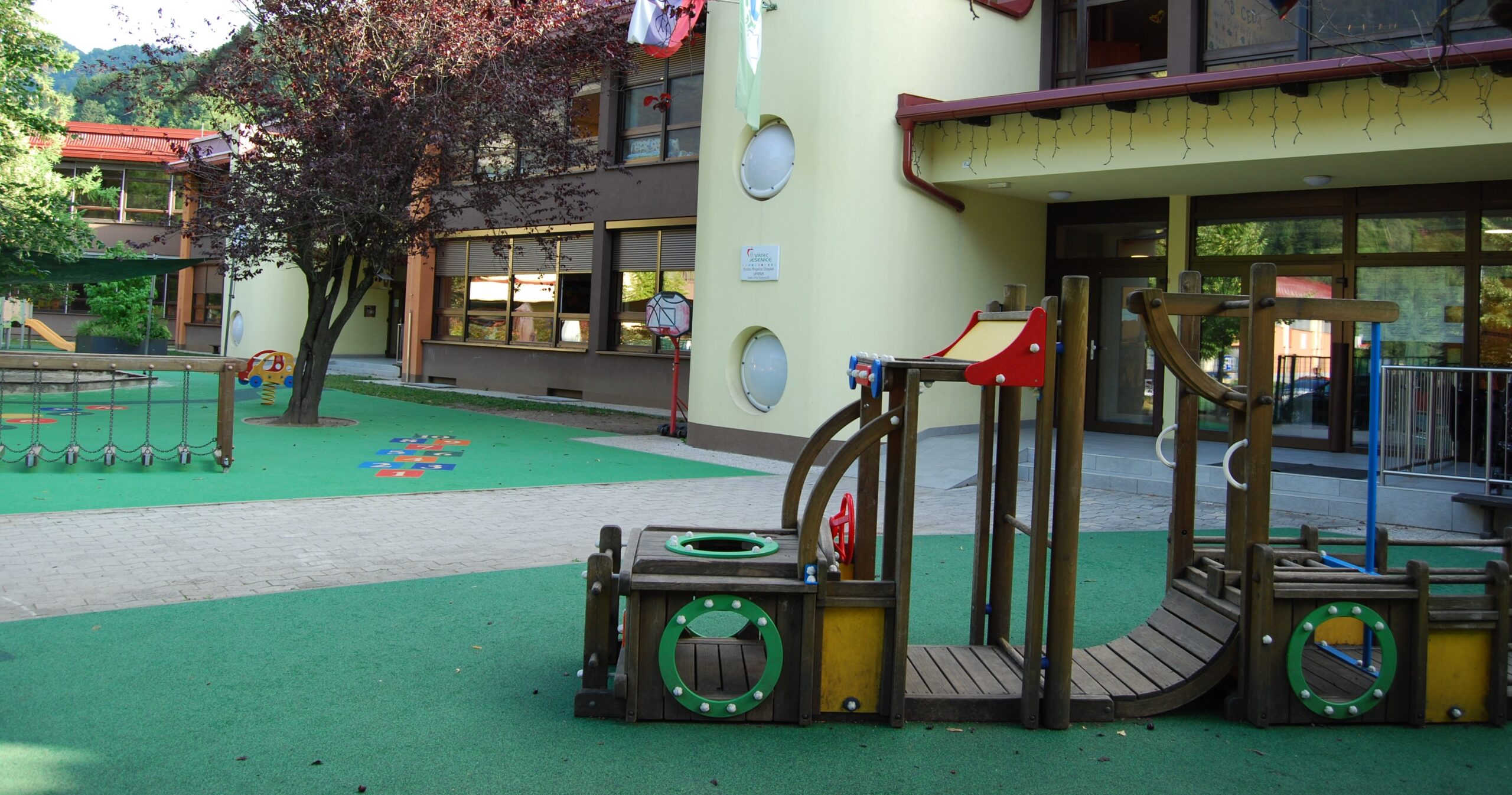 Stavba stoji v neposredni bližini Osnovne šole Toneta Čufarja na Plavžu. V stavbi je 15 igralnic za otroke od prvega do šestega leta starosti.